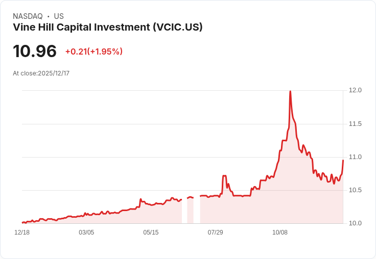 Vine Hill Capital Investment 宣佈其初次公開募股(IPO)定價為每單位10美元,將於2025年12月18日上市交易。