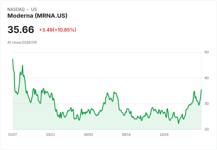 在市場動盪之際,UBS分析師Dmitry Vinogradov宣佈將Moderna(MRNA)的評級從買入下調至中性,主要原因是該公司的收入增長趨於平穩,引發了市場對其未來盈利能力的質疑。Vinogradov指出,若無新的突破性產品推出,Moderna可能難以在本世紀末之前實現盈虧平衡。他將目標股價從40美元下調至34美元,相較於週二收盤價顯示約5%的下行風險。