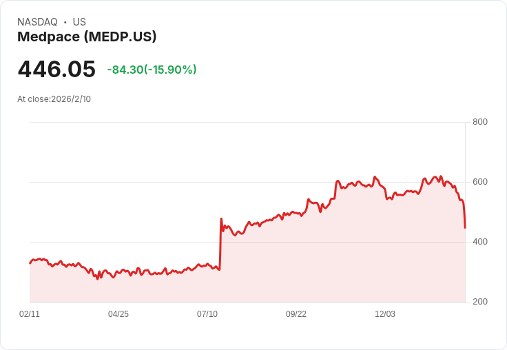 Medpace Holdings(MEDP)在最新發布的第四季財報中,雖然營收和每股盈餘均優於預期,並且對2026年的收入及EPS指引表現健康,卻意外面臨股價暴跌約14%的困境。這一切源於其書對訂比僅為1.04倍,低於市場普遍預期的1.15倍,顯示需求略顯疲軟。