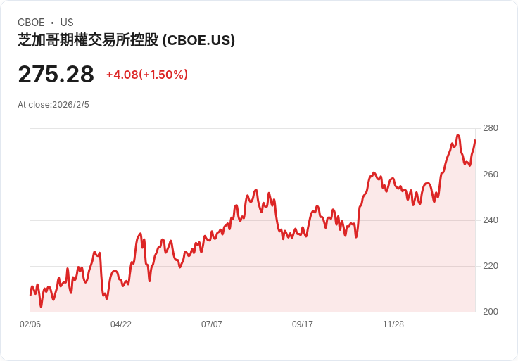 Cboe Global Markets 公佈第四季財報,每股非GAAP盈餘達 $3.06,超出市場預期;營收為 $671.1M,年增28%。