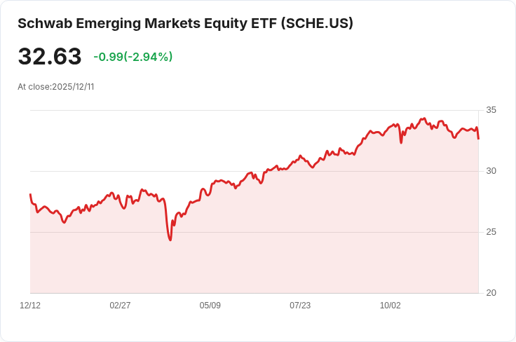 施瓦布新興市場股票ETF (SCHE) 宣佈將於12月16日支付每股0.9079美元的分紅,30天SEC收益率為2.14%。