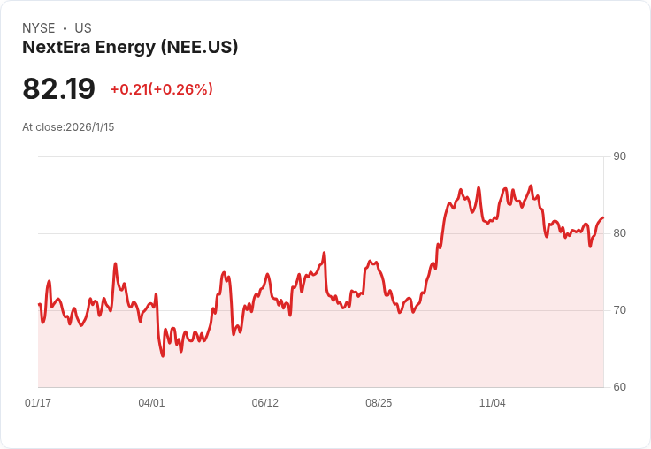 NextEra Energy (NEE) 股價在六個交易日內累計上漲超過3%,預計將連續第七天獲得增長,投資者對其前景充滿信心。