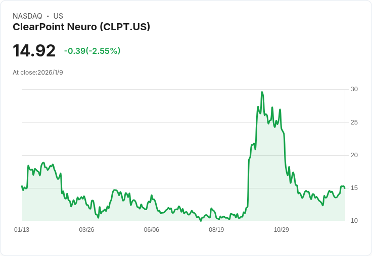 展望未來,ClearPoint Neuro預計2026年的營收將介於5400萬至6000萬美元之間,反映出其強勁的市場需求和持續擴張潛力。值得注意的是,具體的審計結果將在2026年第一季度公佈,投資者對此充滿期待。在盤前交易中,CLPT股價上漲5.29%,達15.71美元,顯示市場對該訊息的正面反應。