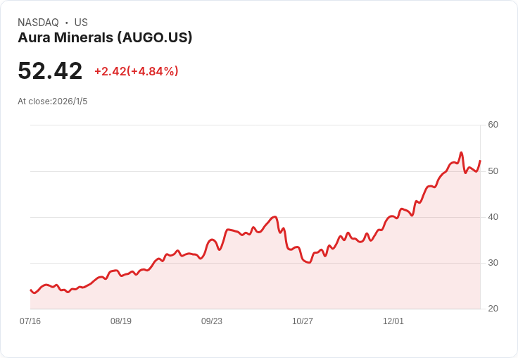 目前,Aura Minerals 的股價在盤前交易中上漲1.7%,達到每股53.30美元,反映出投資者對其未來增長潛力的信心。展望未來,業界普遍預期,隨著工程的推進,Aura Minerals 將在金屬生產及收益方面實現顯著增長,進一步提升公司的市場評價。