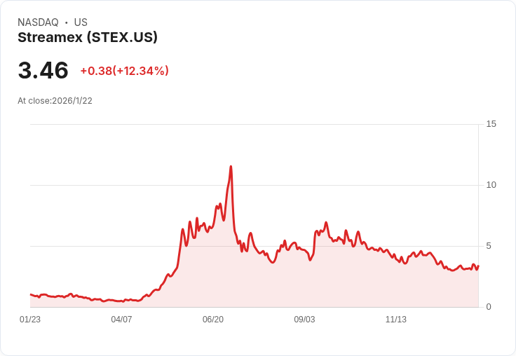 在投資者關注的目光下,Streamex(NASDAQ: STEX)於週四宣佈其計劃進行一項未披露規模的公募股票發行。此舉旨在利用所募集的資金來償還過去的債務並支援公司的日常運營與其他一般企業用途。根據市場反應,該訊息發布後,Streamex 的股價上漲了12.34%。