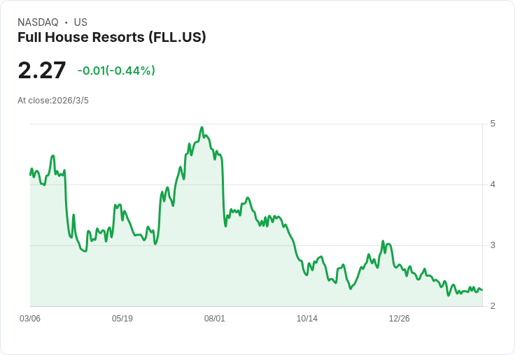 全屋度假村(FLL)公佈2025年第四季度財報,營收達7540萬美元,並強調美國地點的持續增長,預計將在未來幾週破土興建永久賭場。