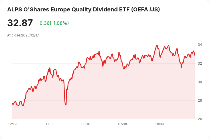 投資者注意!O'Shares International Developed Quality Dividend ETF(OEFA)近日宣佈將於12月23日支付每股0.0944美元的季度股息。根據公告,此次股息將針對截至12月18日的股東進行發放,而在同一天也將成為除權日。這一訊息引起了市場的廣泛關注,顯示出該ETF持續為其投資者創造價值的能力。