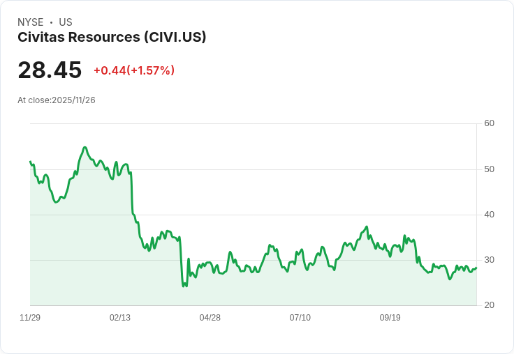 UBS近日針對Civitas Resources, Inc. (NYSE:CIVI)發布最新評估,該公司於2025年第三季度的財報顯示出不俗表現,吸引市場注意。根據報告,Civitas的總產量較前一季度增加6%,達到每日約336,000桶油當量,其中原油日均產量為158,000桶。同時,公司成功將現金運營成本降低5%至每桶9.67美元,展現了良好的成本管理能力。