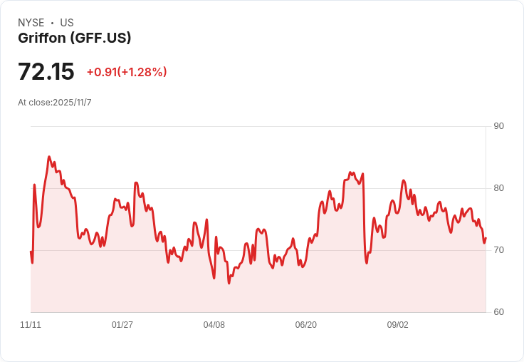格里豐(Griffon, GFF)最近在資本貨物領域的動態吸引了投資者的目光。儘管過去一年總股東回報僅為4.9%,但三年內卻有超過130%的驚人增長,顯示出市場對其未來增長的重新評估。當前股價72.15美元讓格里豐成為焦點,其與公允價值之間存在明顯差距,引發討論其長期潛力的熱潮。