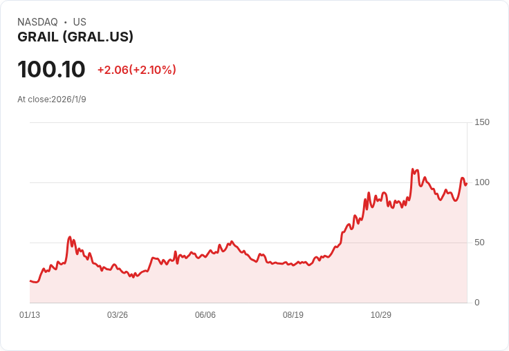 Grail 公佈 2025 年營收預測介於 1.47 億至 1.48 億美元之間,超出市場共識,引發股價上漲約 3%。