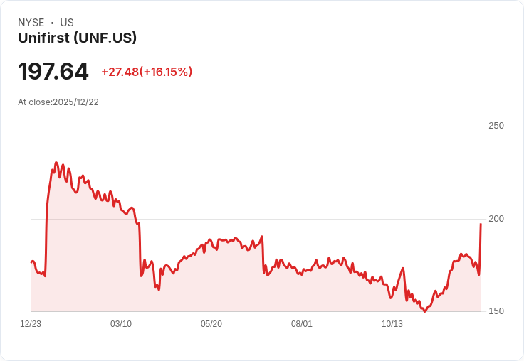 Cintas Corporation(CTAS)於週一宣佈,已向UniFirst(UNF)提出以每股275美元的價格進行現金收購。此訊息瞬間推高了UniFirst的股價,增幅達20%,而Cintas的股價則小幅上漲2.4%。根據Cintas的宣告,此次交易不需經過其股東批准,也不會受到任何融資條件的影響,計畫使用手頭現金及其他可用資源來完成收購。
