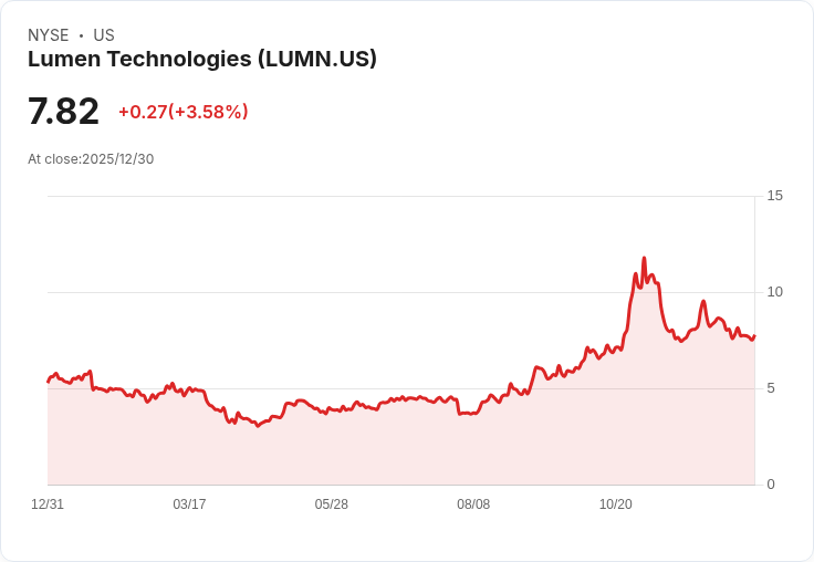 Lumen Technologies Inc.(NYSE:LUMN)在連續三天的股價下跌後,於週二強勁反彈,漲幅達3.44%,收盤報7.81美元。這一回升主要源自投資者的便宜貨購買策略。儘管本月以來該股累計下跌了3.7%,但近期的一則訊息引起了市場的廣泛關注:Lumen 宣佈將提前贖回2029、2030和2031年到期的所有票據,撤銷之前僅贖回15億美元票據的上限。