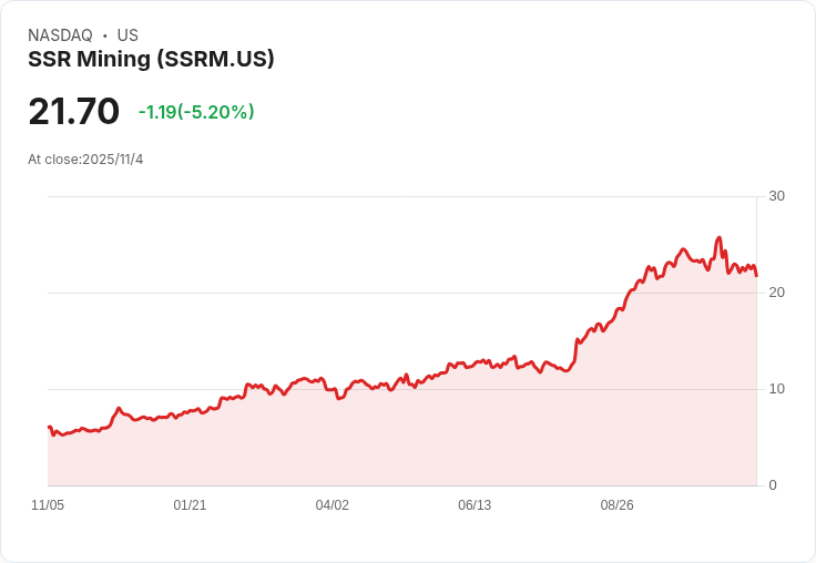 SSR Mining 在第三季財報中透露,預計全年金礦等價物產量將落在410,000至480,000盎司的下半部,並強調持續投資成長機會。