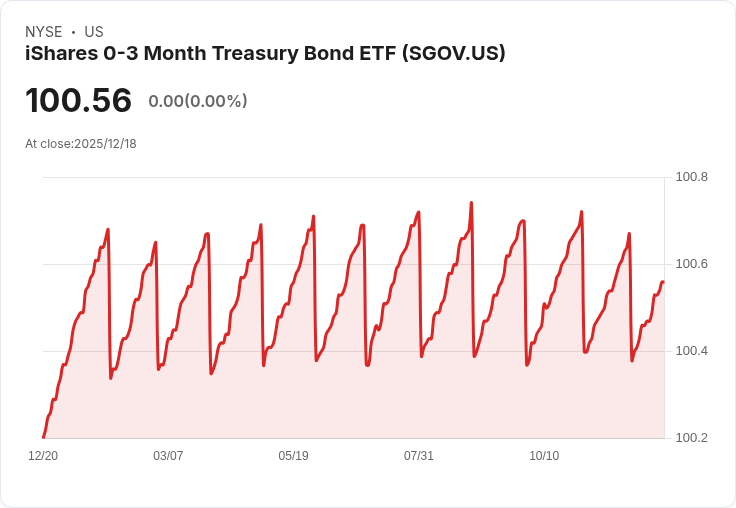 iShares 0-3個月國債ETF(SGOV)近日宣佈,其最新的每月分配金為每股$0.3230,此訊息吸引了投資者的注意。根據最近資料顯示,截至12月17日,該ETF的30天SEC收益率為3.79%,反映出當前市場對短期國債的需求依然強勁。