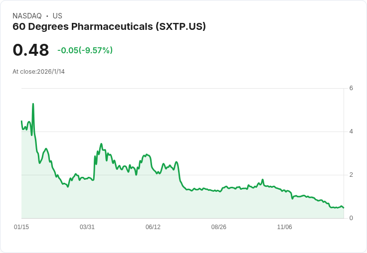 60 Degrees Pharmaceuticals (SXTP) 今日宣佈將於2026年1月20日實施1-for-4的反向股票拆分,此舉旨在重新獲得納斯達克對最低股價的合規性。此次反向拆分後,公司的流通普通股數量將由約515萬股減少至約129萬股。訊息一出,SXTP的股價在盤前交易中上漲了10%,顯示市場對此決策的正面反應。
