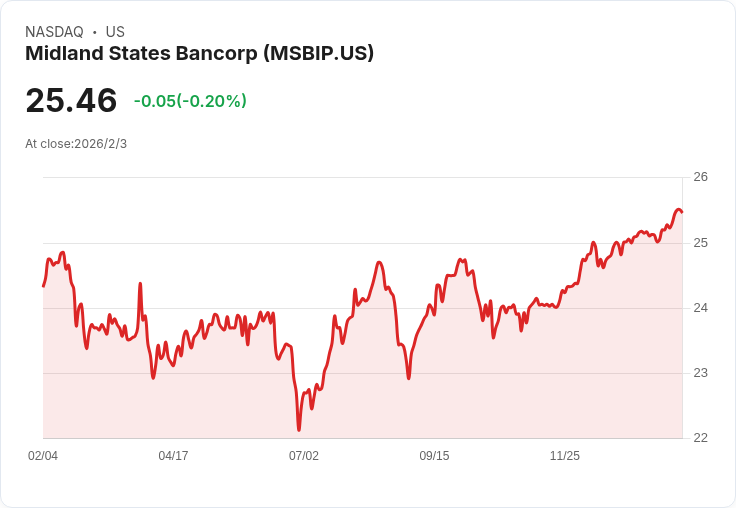 Midland States Bancorp, Inc. 宣佈其永久優先股每季度派發 $0.4844 的股息,吸引投資者注意。