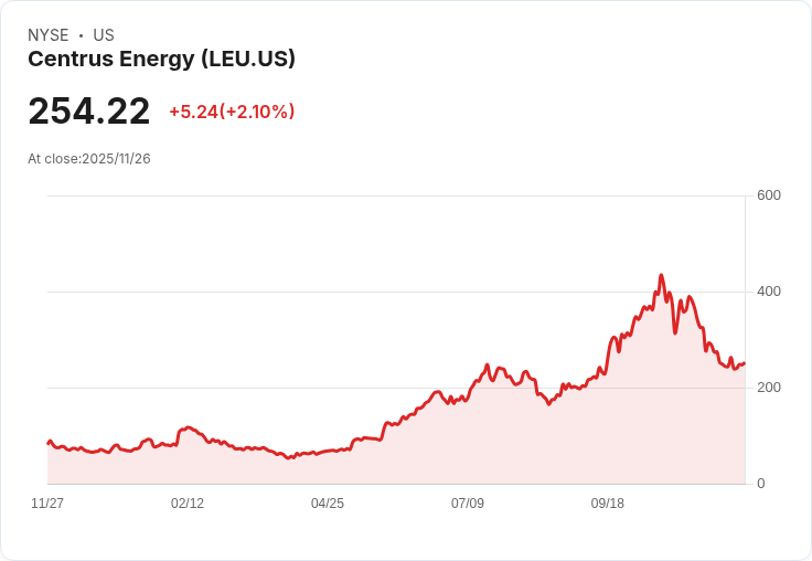 中央能源公司因美國對核能的重視而獲益,股價在過去52週內暴漲208.18%。