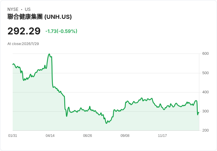 聯合健康集團(UnitedHealth Group, UNH)在本週遭遇重大打擊,週二股價暴跌近20%。此波賣壓源於其第四季度財報未達市場預期,加上美國醫療保健服務中心(CMS)提出的意外醫療補助計畫支付增幅僅0.09%,遠低於分析師預估的4%至6%。公司2026年收入指引也顯示將首度出現三十多年來的年度衰退,令投資者倍感失望。