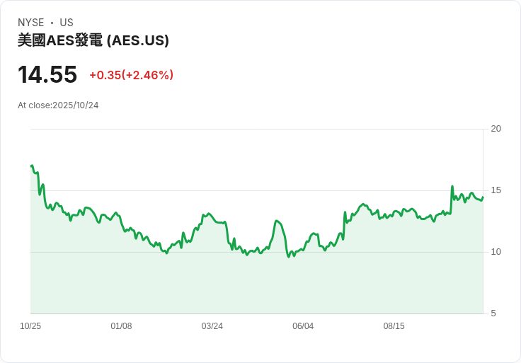 巴克萊將AES公司的目標價從14美元上調至15美元,並維持「超配」評級,顯示對其未來收益的樂觀展望。