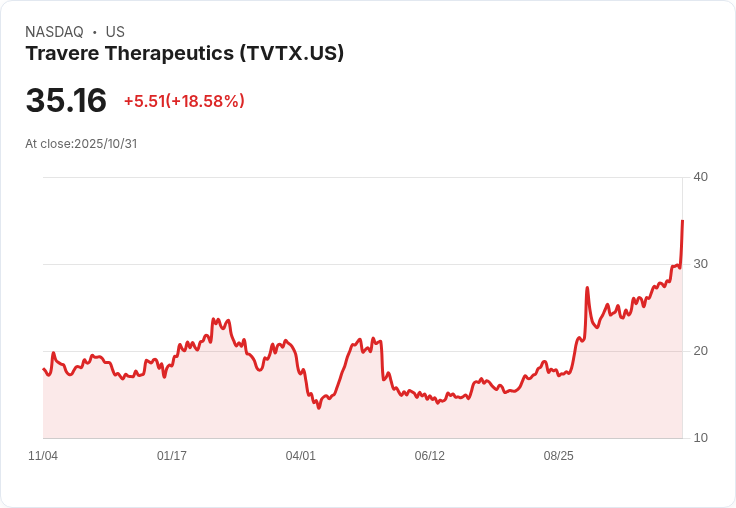 Travere Therapeutics因強勁的第三季業績,股價上漲25.3%,淨利達2570萬美元,收入增長162%。