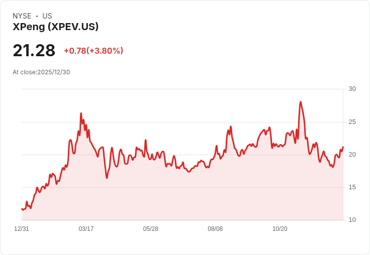 小鵬汽車在即將公佈的交付報告前,股價回升至每股21.28美元,預計第四季交付量將增長36.6%至44.3%。