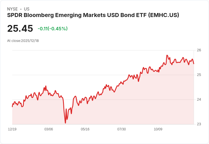 SPDR Bloomberg Barclays新興市場美元債券ETF (EMHC) 宣佈將於12月23日支付每股$0.2221的分配金,30天SEC收益率達5.85%。