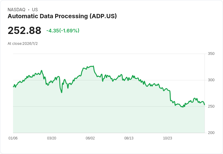 自從Automatic Data Processing (NASDAQ: ADP)在市場上受到高度追捧後,其股價如今已經下跌約23%,距離52週高點大幅回落。然而,這家薪資和人力資源軟體提供商在2026財年第一季仍錄得7%的年增率,營收達到52億美元,顯示出穩定的成長潛力。