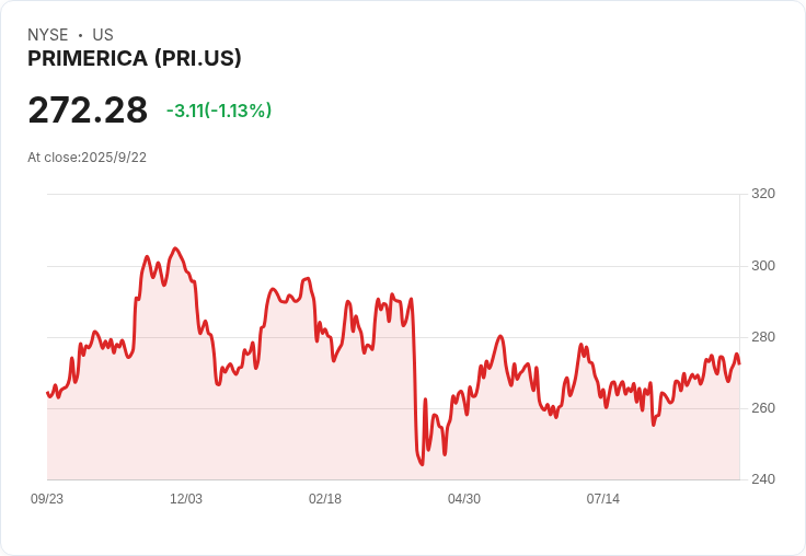 BMO將Primerica的股票評級提升至「優於大盤」,並設定價格目標為318.00美元。此評級與平均投資者意見及量化評級一致,而其他賣方分析師則對該股持有「持平」的看法。