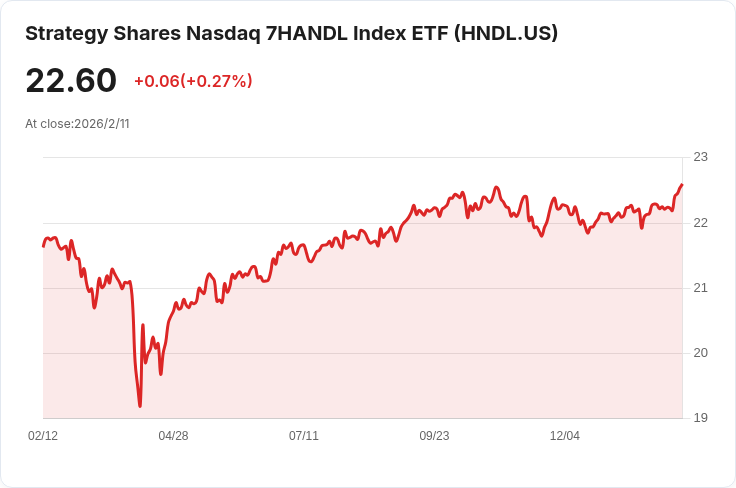 NASDAQ 7HANDL指數ETF(程式碼:HNDL)近日公告,將於2月13日向股東發放每股$0.1317的月度股息,此舉使得該基金的前瞻性收益率達到6.99%。根據公告,股息的紀錄日期為2月12日,而除息日期同樣設在2月12日。
