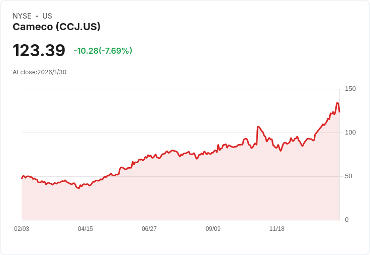 Cameco Corporation(NYSE:CCJ)近日股價飆升,引起市場廣泛關注。該公司股價在2026年1月22日至29日之間上漲了9.68%,成為本週能源類股票中表現最突出的之一。作為全球最大的鈾燃料供應商之一,Cameco的成功與當前核能復甦密切相關。