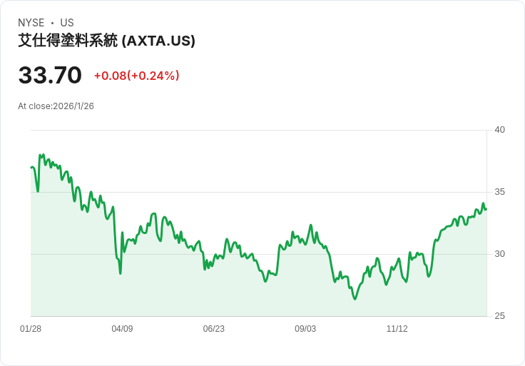 Axalta Coating Systems是一家專注於高性能塗料的全球領導者,其產品主要服務於汽車和工業市場。然而,根據最新資料,自過去一年以來,公司股票下跌9.5%,表現落後於標普500指數23.2個百分點,可能影響了投資者的信心。
