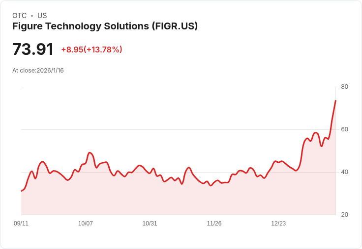 Figure Technology Solutions Inc. (NASDAQ: FIGR) 在分析師調升目標價格後,股價一度飆升至76.57美元,最終收盤上漲13.86%。