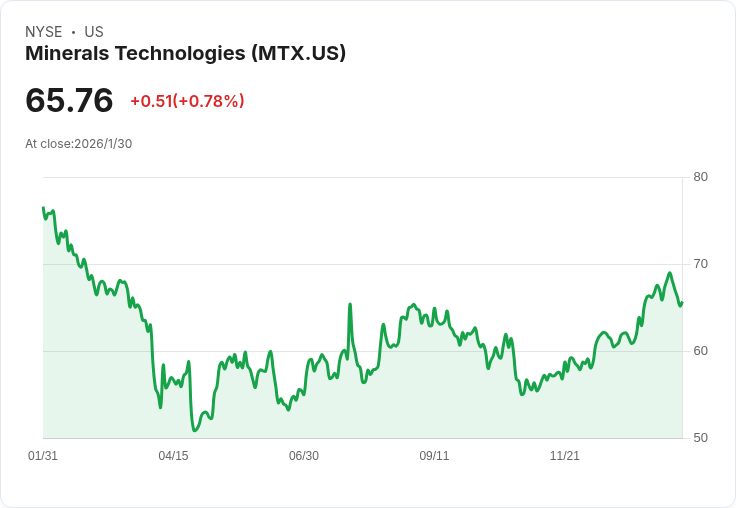 Minerals Technologies Inc (NYSE:MTX)於2025年第四季度發布財報,顯示出在艱難市場環境下的韌性。全年度銷售額為21億美元,與去年相當,然而運營收入卻下降至2.87億美元,全年每股盈餘(EPS)為5.52美元。儘管消費及專業產品部門面臨需求疲軟,工程解決方案部門卻實現了2%的增長,總銷售額達到5.2億美元。