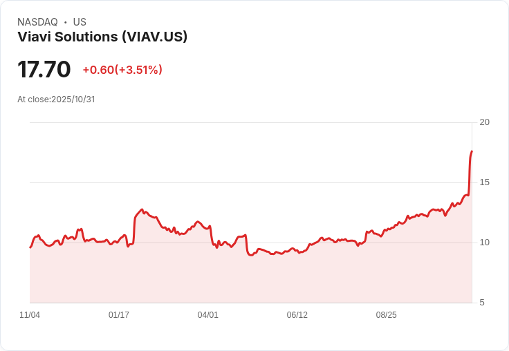 Viavi Solutions Inc. (NASDAQ: VIAV) 股價上漲28.7%,因其對資料中心及國防科技的樂觀展望吸引投資者。