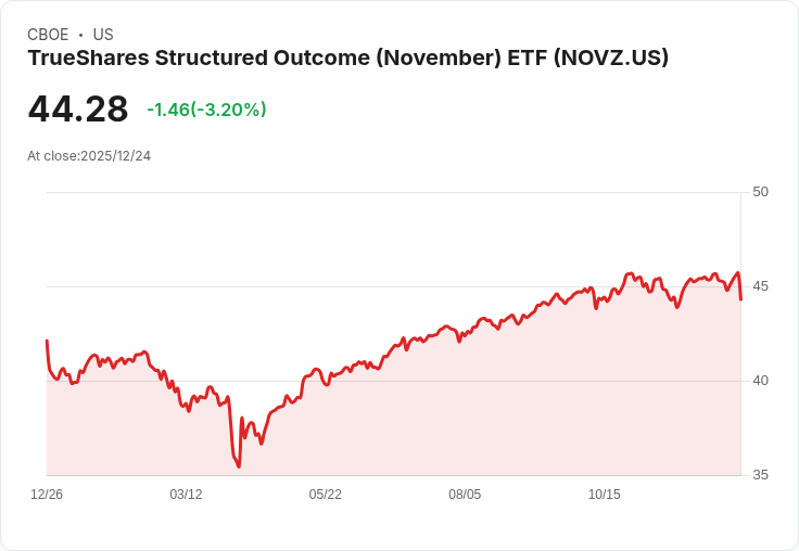 TrueShares Structured Outcome (November) ETF 宣佈將於2025年12月26日支付每股$1.572的年度分配金,記錄日期為12月24日。