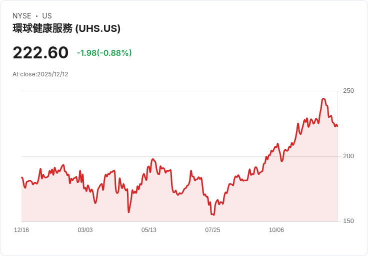 聯合健康服務(UHS)最近公佈了令人振奮的第三季財報,營收同比增長約13%,超出市場預期,這在醫院經營困境中再次增強了對其業務運作的信心。該公司目前股價回升至222.6美元,90天內回報率達16.1%,一年總股東回報率則為19.3%。隨著收益持續增長及股價接近歷史高點,投資者關注UHS是否仍然被低估,或是市場已經反映下一波增長。
