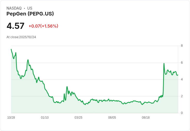 銀行美國(BofA)於10月9日宣佈將 PepGen Inc.(NASDAQ:PEPG)的目標價格上調至 $3,這一變動源自公司在其 Myotonic Dystrophy Type 1(DM1)計劃中獲得的初步正面早期階段資料。該資料顯示出有望改善剪接修正,吸引了投資者的注意。然而,BofA 同時保持對該股的「表現不佳」評級,指出目前尚缺乏足夠的資訊來證明剪接修正能帶來實際的功能性益處,以及重複給藥後觀察到的剪接修正程度。