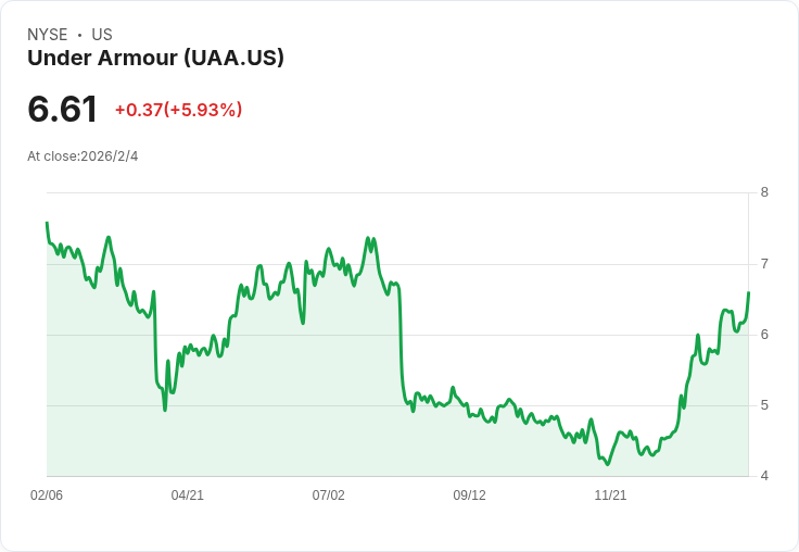 隨著Under Armour(UAA)即將在2月6日開盤前發布2026財年第3季的業績報告,市場對其表現充滿期待。然而,根據分析師的共識預測,每股盈餘預計將達到-$0.01,而營收則有望抵達13.1億美元。值得注意的是,在過去兩年中,Under Armour成功擊敗EPS預估的比例高達75%,而營收也有63%的機會超出預期。