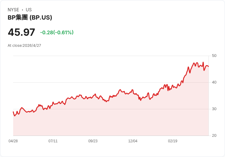 英國能源大廠BP p.l.c.再獲華爾街分析師加碼看好,短期內股價與股東報酬成為市場焦點。Scotiabank於4月22日將BP目標價從41美元調升至58美元,並維持「Outperform」評級;此一目標價較當時股價約有約25%的上行空間。早在4月15日,UBS也將BP評級由「Neutral」上調為「Buy」,並同步提高目標價(調升幅度以英鎊計算約增加50鎊)。