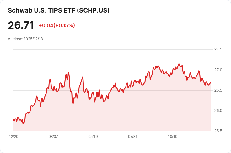 投資界近期聚焦施瓦布美國TIPS ETF(SCHP),該基金於近日宣佈其每月配息為0.1766美元。根據最新資料,截至12月17日,該ETF的30天SEC收益率達到4.70%,顯示出其穩健的回報潛力。此次配息將於12月26日發放,適用於截至12月19日登記的股東,而在同一天也將進入除息日。