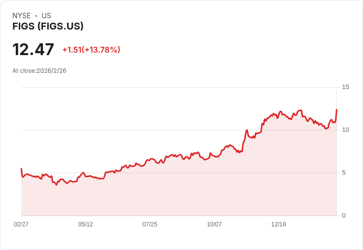 Figs Inc.(NYSE:FIGS)在週四的交易中表現亮眼,股價一度攀升至12.66美元,創下近四年的新高。投資者對其去年的優異表現及今年雙位數的營收增長展望反應熱烈。根據最新報告,Figs 去年的淨收入達到3425萬美元,較2024年的272萬美元大幅增長1159%;而營收則從5.55億美元增加至6.31億美元,增幅為13.7%。