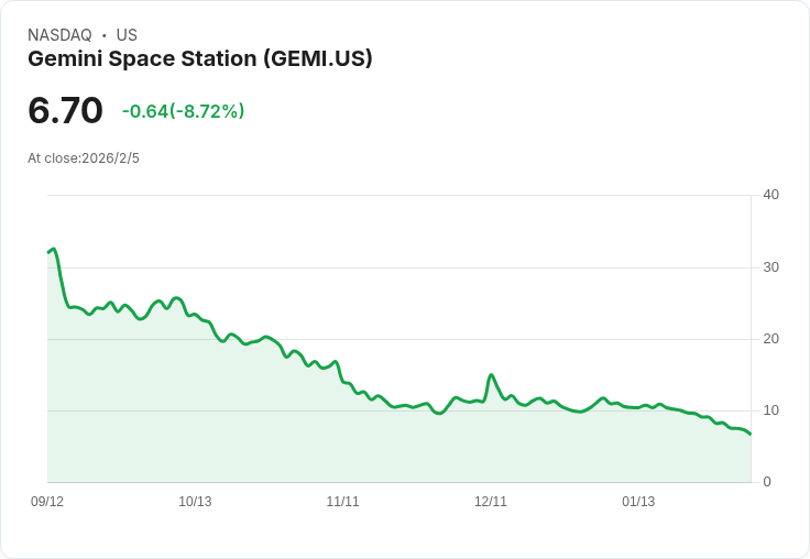 Gemini太空站本週股價大幅下滑,主要因公司進行業務重組及加密貨幣價格崩盤。
