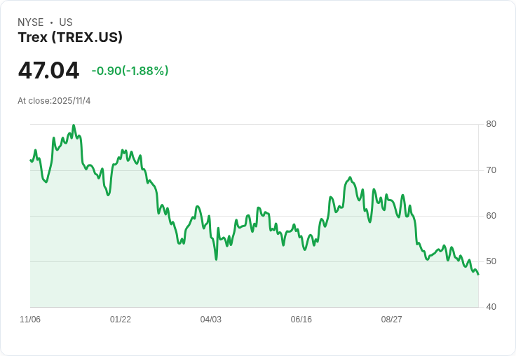 在最新的市場分析中,美國銀行證券於週三宣佈將Trex公司(TREX)的評級從“買入”下調至“表現不佳”。此一決策主要基於該公司近期第三季財報顯示的成長乏力,以及對2025年展望的修正,反映出家庭裝修需求的下降及銷售預期持平。據報導,Trex目前預計2025年的營收將與2024年持平,這是自四年內第三次大幅下調年度營收預測。