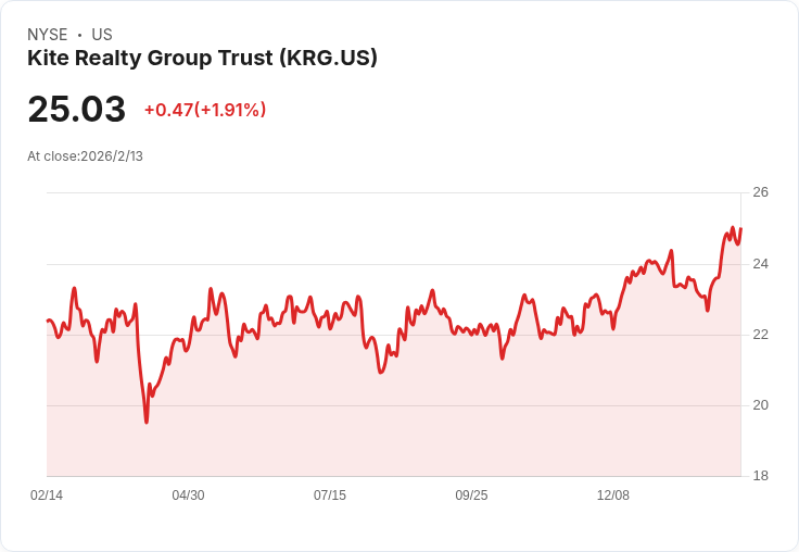 Kite Realty 將於2月17日公佈第四季財報,預期每股基金性質收益為0.51美元,營收達204.48百萬美元。