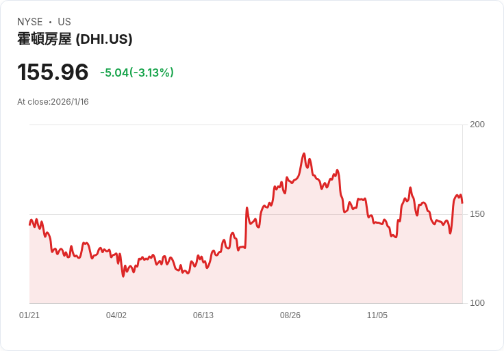 美國住宅建設巨頭D.R. Horton (DHI) 預計將在1月20日開盤前發布其2026年第一季的財報。根據市場共識,預估每股盈餘(EPS)為1.92美元,同比下降26.4%,而營收則預期為66.5億美元,同比減少12.5%。這段時間內,D.R. Horton 在過去兩年中有88%的機會超越EPS預測,且100%達成收入預期。然而,近期資料顯示,EPS預測未見上調,反而出現9次下修,而營收預測僅有一次上調與六次下修。
