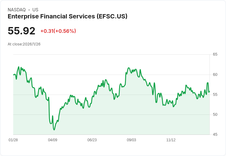 企業金融服務公司(Enterprise Financial Services Corp, EFSC)近日公佈了其2025年第四季度的財報,顯示每股稀釋盈餘為1.45美元,較上季的1.19美元和去年同期的1.28美元均有顯著增長。公司的總裁兼CEO詹姆斯·拉利(James Lally)指出,近期成功收購亞利桑那州和堪薩斯州的分行,不僅推動淨利息收入增至1.68億美元,還加速了公司在高增長市場的擴張策略。