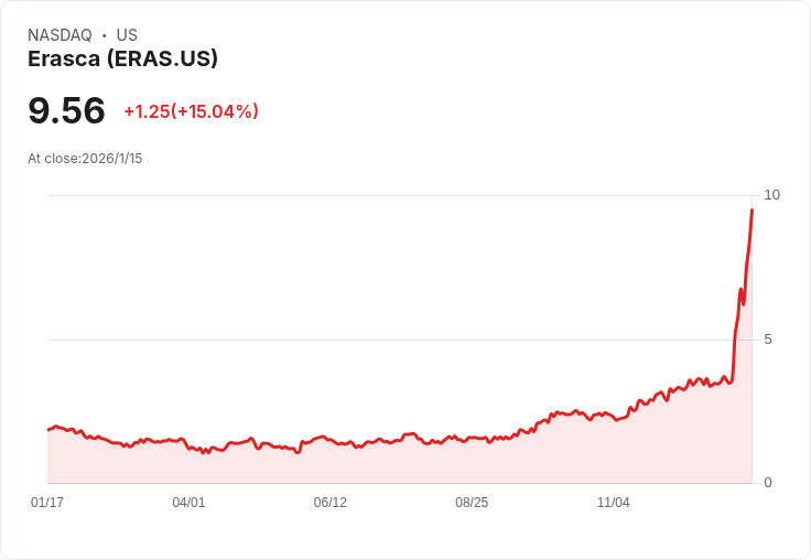 Erasca Inc. 最近在股市表現亮眼,週四其股價再度觸及三年新高,最高達到$9.72。這波漲勢主要受到四家分析機構的樂觀評估所推動,包括Clear Street、HC Wainwright、Piper Sandler和Stifel等,皆給予“買入”或“增持”的評級。其中,Clear Street更是將目標價格從$3上調至$11,顯示出對該公司的強勁信心。
