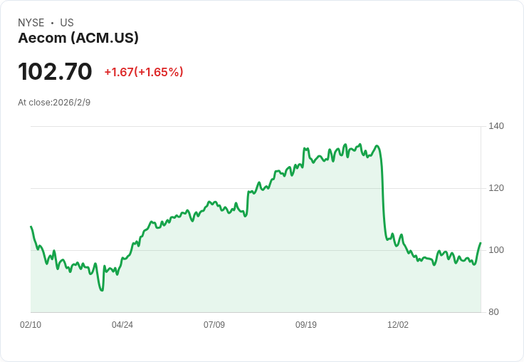 基礎設施服務公司 Aecom 公佈的季度業績超越華爾街預期,股價在延後交易中上漲3.9%,並調高2026年財測。