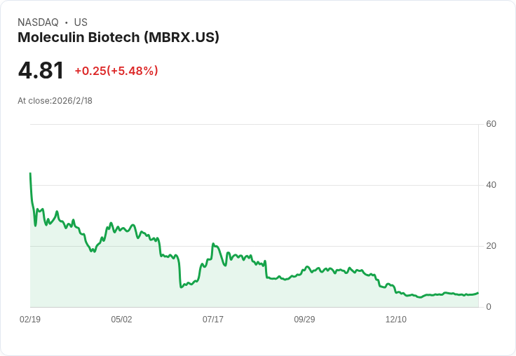 根據該公司的計劃,MBRX將發行新的未註冊五年期權證,允許購買高達637萬股,行使價格將是每股3.90美元或接下來五個交易日內最低成交價中的較低者。此項交易預計於2026年2月20日左右完成,所籌集的淨收益將用於工作資本及一般企業用途。