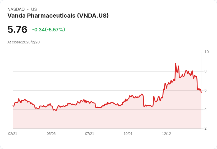 Vanda Pharmaceuticals宣佈其新藥Bysanti(milsaperidone)已獲得美國食品藥品監督管理局(FDA)的批准,用於治療雙相I型情感障礙和精神分裂症。此訊息推動公司股價在週五的盤後交易中大幅上揚,增長約44%。